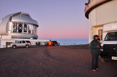 ようやく夕日も傾いて山頂に着く頃、世界の天体望遠鏡が現れます。
