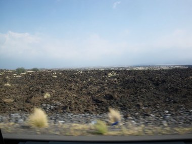 空港から降りた瞬間びびる、見渡す限りの溶岩大地。