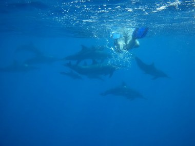 マンタちゃんも、海面にひれっと手を出して応えてくれたの。